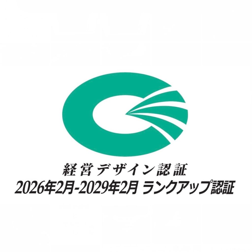 「経営デザイン認証」とは、経営の「設計図」を記述し、対話を通じて組織の価値創造プロセスを評価・認証する制度です。 今回弊社が取得した「ランクアップ認証」は、過去の認証からさらに経営の質を高め、継続的な改善と成長を遂げている組織に対して授与されるものです。