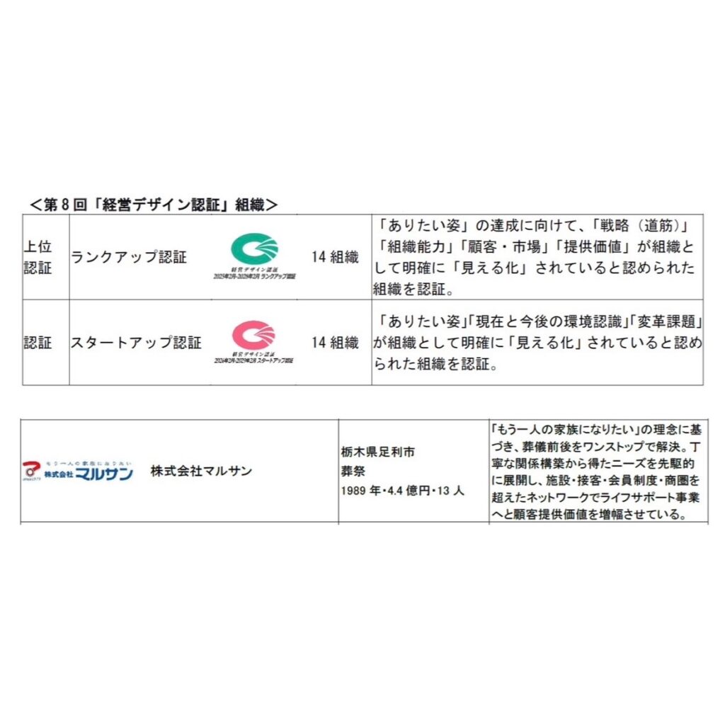この度、株式会社マルサンは、2026年2月18日に公益財団法人日本生産性本部の経営品質協議会より「第8回 経営デザイン認証 ランクアップ認証」を取得いたしました。今回の認証取得から、さらなる生産性の向上と地域経済の活性化に努めてまいります。