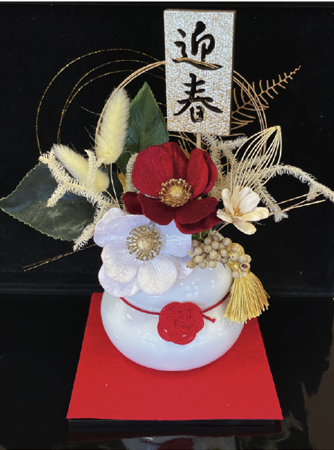 鏡餅の形をした陶器にお花をアレンジし、年神様をお迎えしましょう!